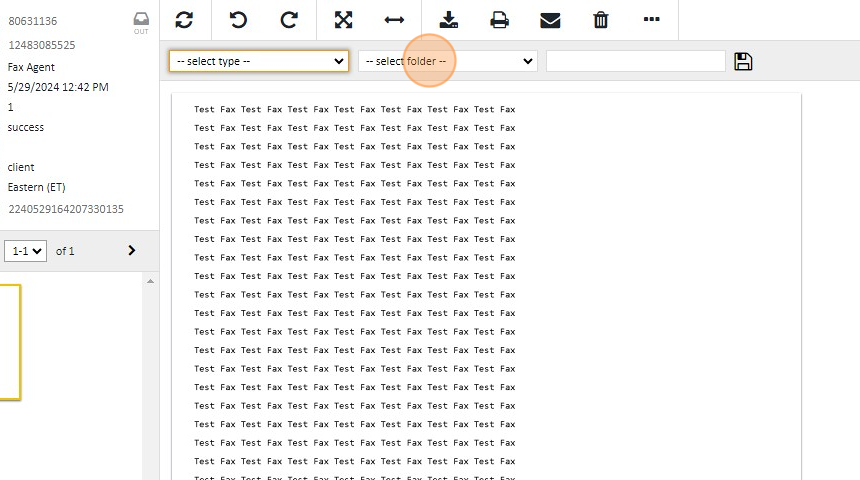 3. This will open the fax in the View tab. Use the '--select type--' drop down to assign the Fax Type